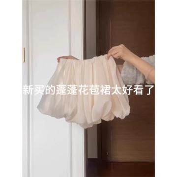 大碼花苞半身裙女春夏新款超火蓬蓬a字短裙子紗裙小個子辣妹半裙