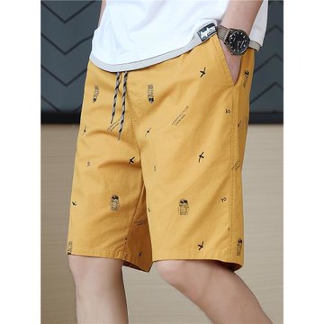 夏裝五分褲男士黃色直筒印花大褲衩子潮流百搭純棉休閑短褲男夏季