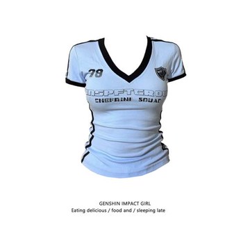 美式復古字母印花球衣風v領短袖T恤男女2025夏季寬松休閑透氣上衣