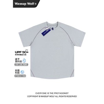 Wassup Wolf拼接T恤男潮牌涼感抗菌速干衣夏季防曬UPF50+運動短袖