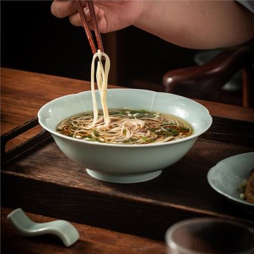 景德鎮陶瓷仿宋天青荷花葵口半品湯碗新中式商用面碗宋宴意境餐具
