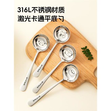 316不銹鋼勺子食品級吃飯勺子可愛兒童調羹個人專用加深平底湯匙