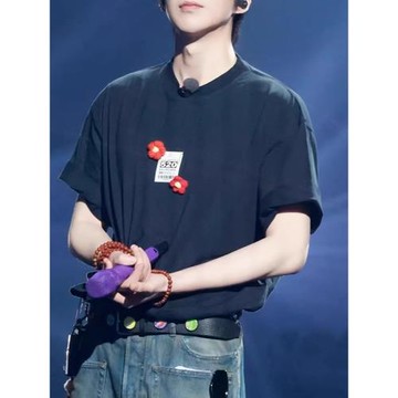 男款黑色概念性印花短袖T恤|8E9FJK3