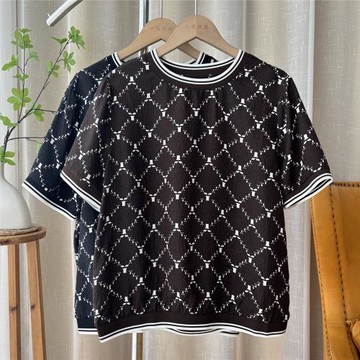 洋氣重工減齡高級感針織T恤打底衫顯瘦體恤漂亮高腰別致上衣女夏