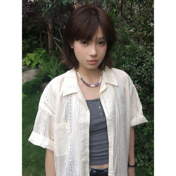 日系復古鏤空短袖襯衣上衣女2025夏季新款小個子寬松休閑襯衫外套