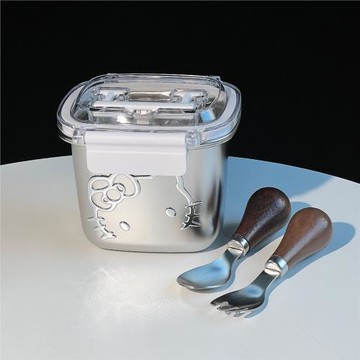 304不鏽鋼 正方形趣味保鮮盒 可微波 14 x 14 x 7cm 600ml 2個 1個容器 + 1個蓋子