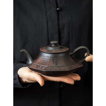 建水紫陶茶壺手工雕刻將進酒八方云盧壺鳳鳴壺家用單壺高檔泡茶壺