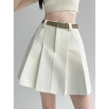 西裝短裙黑色百褶裙高腰a字裙半身裙女夏顯瘦春學院風不規則腰帶