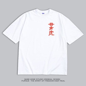 BABE HOME 白色不透重磅純棉短袖半袖t恤寬松圓領潮流字母母老虎