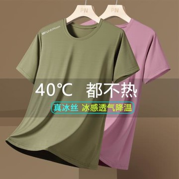【2件裝+真冰絲】男夏季冰涼降溫短袖T恤男士圓領薄款運動速干衣