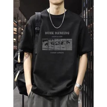男款黑色概念性印花短袖T恤|8E9FJK3
