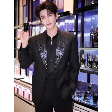 張凌赫同款西裝外套男士韓版痞帥休閑春秋季高級感手工釘珠西服