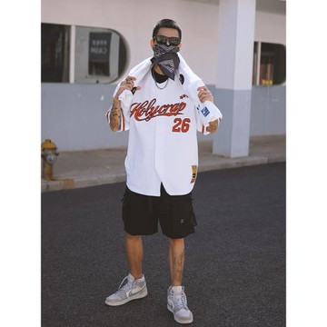 (免運)Holycrap嘻哈開衫球衣原創潮牌美式西海岸hiphop街舞棒球短袖T恤