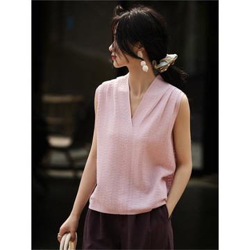 (免運)小雪自留浮花霧影夏日頌提花工藝萊賽爾桑蠶絲無袖針織上衣26女の