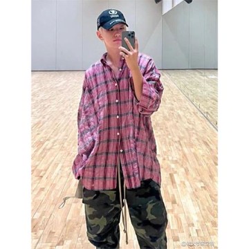 (免運)hoshi權順榮同款粉色格子襯衫女2025年新款春秋韓版襯衣外套上衣
