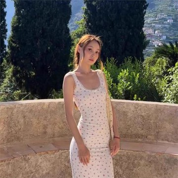 (免運)SKIMS卡戴珊同款粉色蕾絲碎花彈力緊身連衣裙大露背吊帶長裙