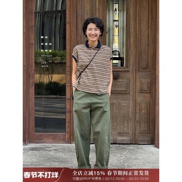 (免運)浪清 日系條紋t恤女短袖2025新款顯瘦遮肉夏季polo衫寬松翻領上衣