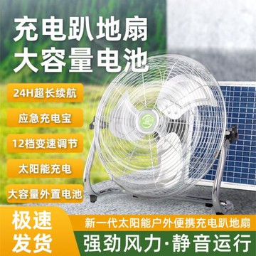 太陽能充電趴地扇家用121416寸工業釣魚露營12V交流直流充電風扇