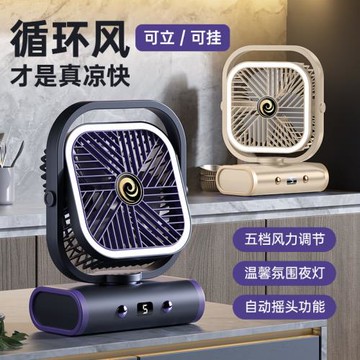 2025數碼屏搖頭戶外露營風扇夜燈多功能充電式循環扇帳篷禮品跨境