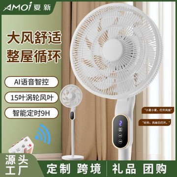 工廠新款跨境遙控電風扇大風力語音搖頭循環扇家用落地扇禮品風扇
