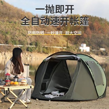 2人拋帳免搭建速開帳篷戶外野營3-4人全自動野外帳篷露營防雨船帳