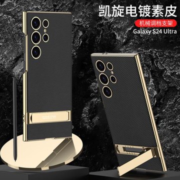 新款適用三星S24Ultra手機殼電鍍素皮調檔支架s24+精孔防摔保護套