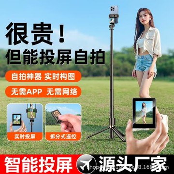 2025新款投屏自拍桿WIFI投屏雙藍牙遙控合金伸縮桿拍攝角度靈活