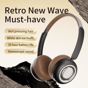 新款CR-28奶油風藍牙耳機復古風學生可愛小巧金屬雙耳耳機耳麥6.0
