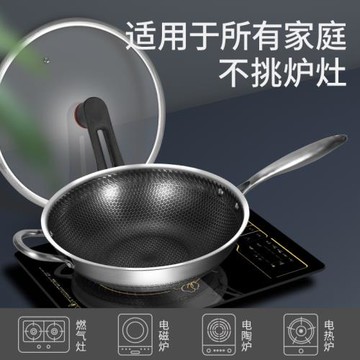 雙面屏不銹鋼炒菜鍋無涂層炒鍋不粘鍋家用電磁爐燃氣通用鍋具