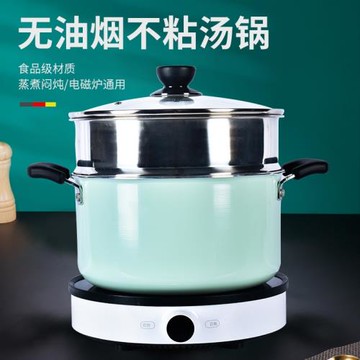 雙陶瓷湯鍋無氟涂層不粘鍋蒸煮燉鍋電磁爐燃氣灶通用