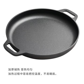 加厚煎餅鍋雙耳鑄鐵平底鍋無涂層鏊子生鐵烙餅鍋家用不粘鍋電磁爐