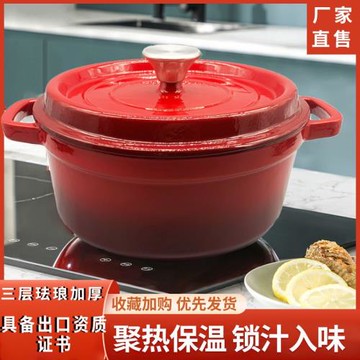 點我下載琺瑯鑄鐵煲湯鍋陶瓷平底鍋家用燉肉煲湯鍋雙耳儲熱養生鍋廠家批發