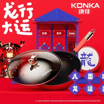 康佳龍行大運禮品炒鍋家用大容量炒菜鍋多功能廚房不粘鍋平底鍋具