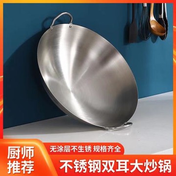 201無磁不銹鋼雙耳鍋不生銹不粘鍋加厚廚師鍋食堂飯店家用炒菜鍋