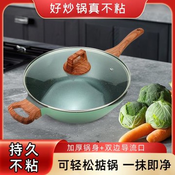 不粘鍋炒鍋家用鍋炒菜鍋平底鍋麥飯石色電磁爐燃氣灶炊具日用餐廚