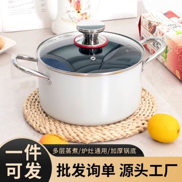 家用麥飯石加厚湯鍋多層不粘鍋燉鍋電磁爐煤氣灶蒸鍋帶蒸籠大容量