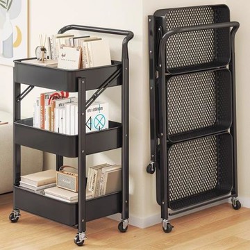 折疊小推車廚房置物架免安裝可移動家用果蔬菜書架雜物零食收納架