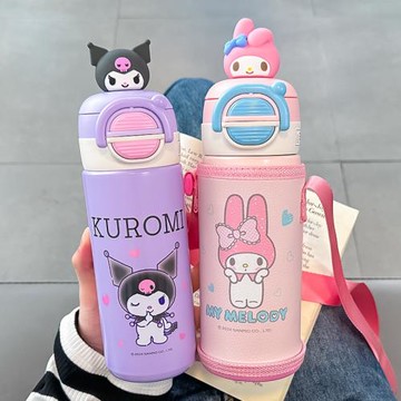 日本庫洛米美樂蒂帶杯套雙飲316保溫杯兒童上學專用吸管杯女新款