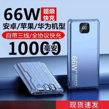 充電寶快充帶線20000移動電源66W超級快充充電寶超薄支持印刷閃充