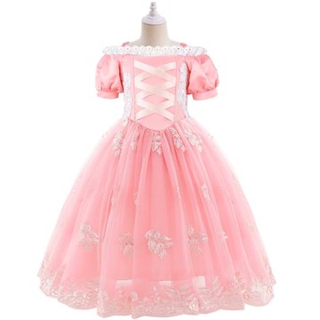 外貿新款灰姑娘公主裙女童cosplay禮服裙收腰蓬蓬連衣裙網紗童裙