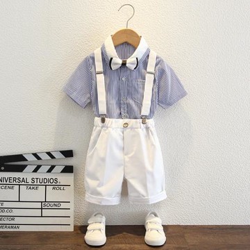 男童背帶褲兩件套學院風夏季新款兒童條紋禮服畢業合唱攝影演出服