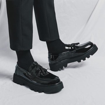優100英倫風潮流一腳蹬亮皮ins小皮鞋休閑男士韓版流蘇樂福鞋厚底