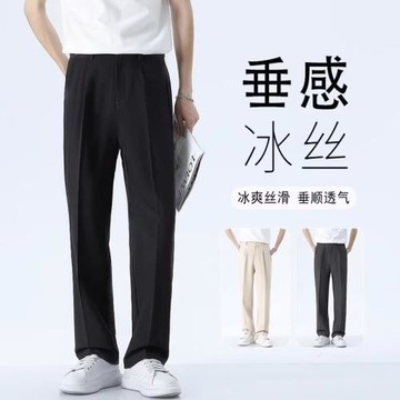 垂感直筒褲男士闊腿夏季寬松運動休閑長褲子潮流小西裝褲