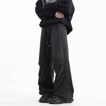 美式秋冬闊腿直筒衛褲男學院風運動褲子寬松垂感做舊炸街痞帥長褲