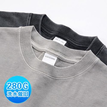 跨境歐版280G復古水洗做舊短袖t恤男寬松純棉潮牌oversize t恤