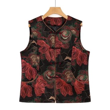 點我下載中老年春季新款馬甲復古媽媽無袖民族風老人中式馬夾時尚坎肩外套