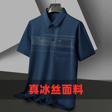 冰絲男士短袖t恤中年人翻領爸爸裝夏季中老年人爺爺polo衫帶口袋