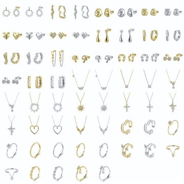 宏雲Hongyun- Xyx-不鏽鋼鑲鋯石滿鑽耳環幾何多元素耳墜鍍18k金保色耳飾組合