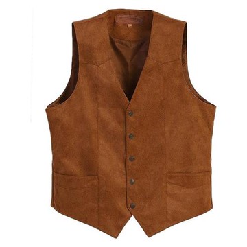 歐美咔嘰風西部牛仔麂皮絨馬甲男休閑鹿皮絨獵裝馬夾大碼仿皮外套