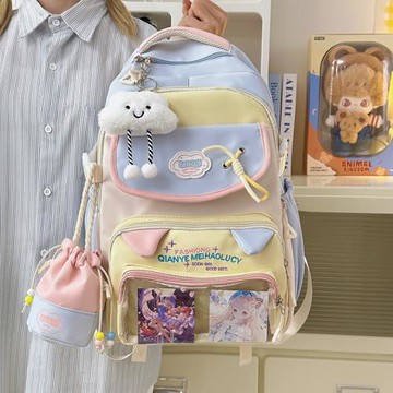 可愛痛包雙肩包女生ins大容量初中高中學生撞色校園書包電腦背包